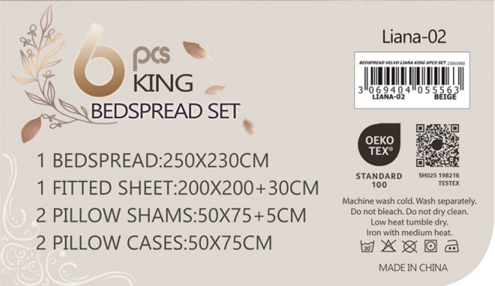 مفرش ليانا مضغوط 6 قطع نفرين ماركة (VELVO) علامة تجارية